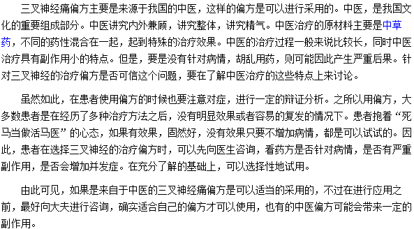相信在看完小编的介绍后,大家已经很明确的知道患上三叉神经痛能不能够用偏方治疗的内容了,三叉神经痛这种疾病对身体健康有较大危害,还是要及早根治,希望上述文章能够帮助到大家。