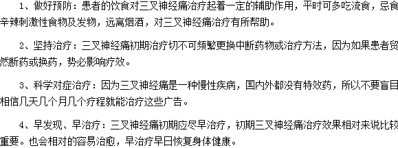 三叉神经痛初期的四大治疗原则就给大家做了介绍到这里了,实际上三叉神经痛的治疗的核心就是“早发现、早治疗”,三叉神经痛患者一定要有耐心,治疗三叉神经痛的过程确实是是比较漫长的,只有坚持治疗才能尽快治愈。
