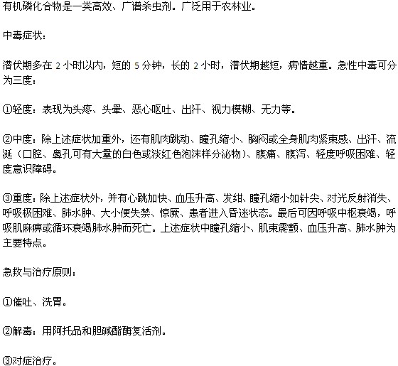 以上是医学教育网小编为大家搜集整理的全部内容,通过上面的介绍,相信大家已经对有机磷食物中毒该如何急救有了更多的了解。大家可以将这篇文章分享给他们,引起更多朋友的关注!