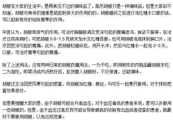相信大家对胃病药物已经有了更深一层的认识,家庭中使用的胡椒也可以治疗胃病,建议大家能够好好保养自己的肠胃。