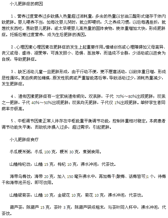 原因和食疗方法您都了解了吗?小儿肥胖会严重影响孩子的身体状况,在生活中要有效的预防,多运动,注意饮食习惯,避免孩子患上小儿肥胖症。