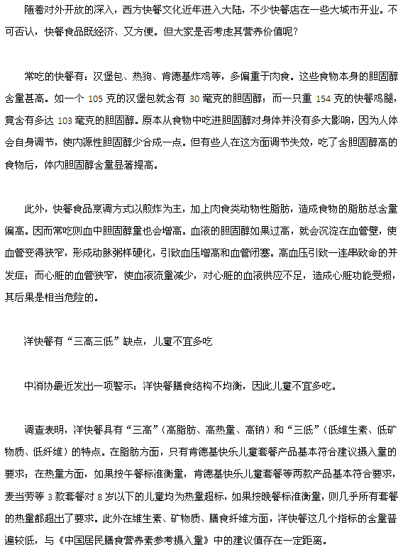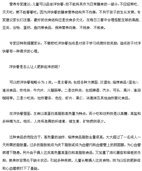 现在儿童为什么不宜吃洋快餐您了解了吗?小编提醒您,孩子肥胖一定要引起注意,因为肥胖很容易引起一些其他疾病,所以各位家长一定要重视,及时预防,帮助孩子培养良好的饮食习惯。真心的希望我们的分享能够给您提供帮助,在此祝您身体健康。