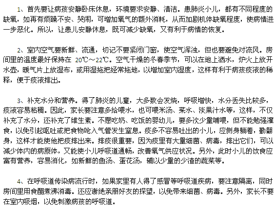 当孩子出现咳嗽不止现象时,家长们要引起重视,避免肺炎疾病的出现。肺炎疾病是极其困扰患儿身心的,尤其是在有人得了流行性感冒的时候,一定要及时的进行有效隔离,并且把贴身衣物消毒,那么,小儿肺炎患者有哪些护理方法呢?