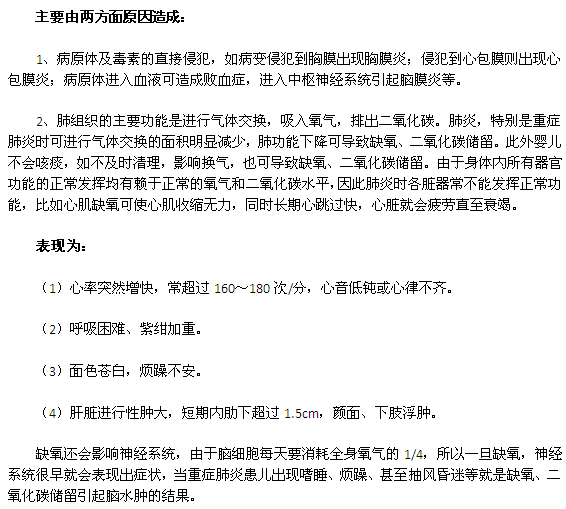肺炎是小儿的常见多发病,大部分患儿经及时治疗1~2周就会痊愈,但重症或治疗不当的肺炎往往会出现一系列并发症,下面小编带大家了解下小儿肺炎的并发症: