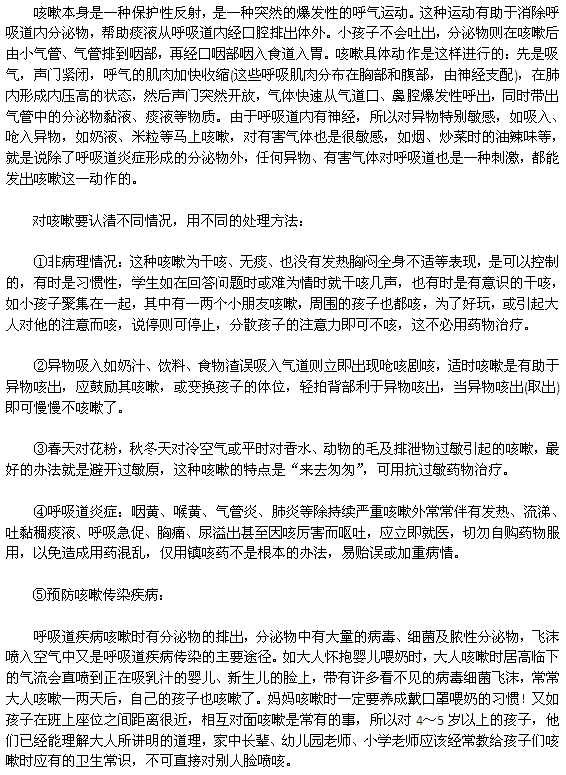 以上就是由医学教育网搜集整理关于不同咳嗽处理办法的相关信息。小编提醒,对于咳嗽来说,对症下药才是最主要的,同时在生活中要有效的预防,多运动,注意饮食习惯,有身体不适,请立即去医院就诊,以免耽误病情。