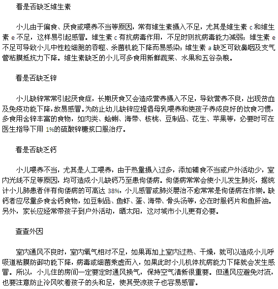 近年来,临床经常出现反复感冒而就诊的小孩子,有的一个月内就患病2次,每遇着凉就咽痛、咳嗽,甚至发烧、呕吐等。时好时犯,让家长十分担心。现在,我们来查查小儿反复感冒的原因。