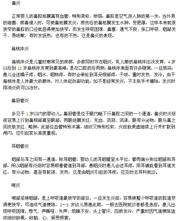 以上介绍的疾病,发病时不是绝对分开,有时会同时发病,有时症状互相交错。有记载5岁以下的小儿感冒平均每人每年发生4~6次,随年龄增加会逐渐减少。感冒90%是由病毒感染引起的,多数是由于人群飞沫通过呼吸道传染的,尤其是人群聚集的地方,更容易传播。