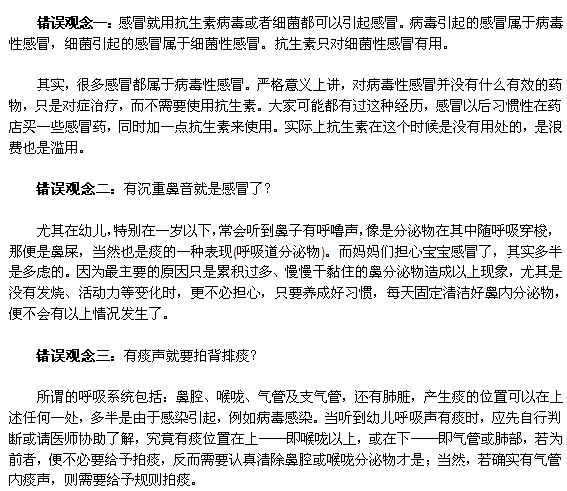 据医学观察,一个孩子在一年内往往反复发生多次感冒,尤其是婴幼儿和学龄前儿童更容易感冒。有些父母在对待小儿感冒及呼吸道疾病方面存在很多误区,专家特别提醒父母注意,五个对宝宝感冒的错误观念。