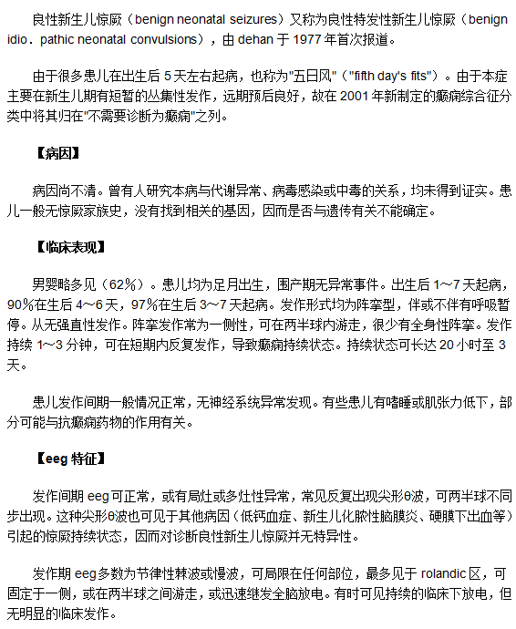 您想知道关于良性新生儿惊厥的知识吗?相信您看了这篇有关良性新生儿惊厥的文章,您就了解了。