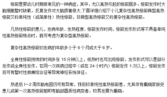 以上就是小编为您整理的有关小儿复杂性高热惊厥的文章,相信大家在经过对上文的阅读后应该对于小儿复杂性高热惊厥有了一定的了解,希望可以对大家有帮助。