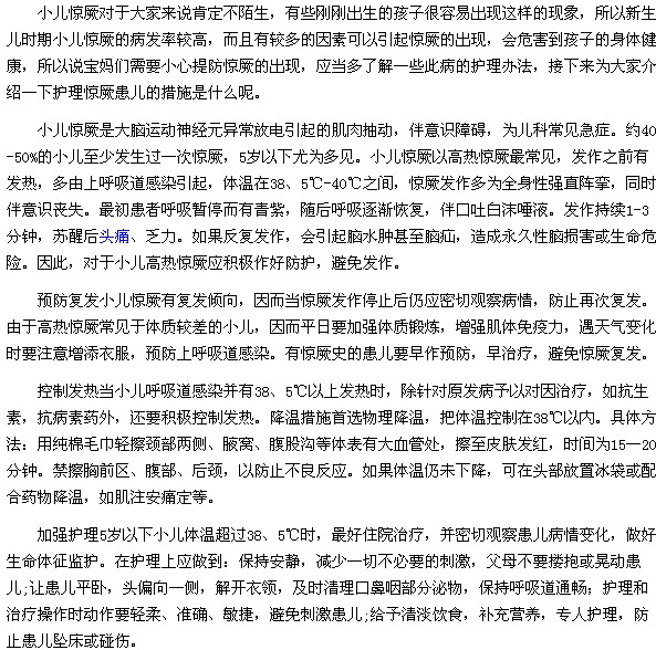 小儿惊厥有哪些有效的护理措施?相信很多患有小儿惊厥的家长朋友们都想知道,那么,小儿惊厥有哪些有效的护理措施呢?相信大家看了下面医学教育网小编为大家整理的这篇文章就了解了。