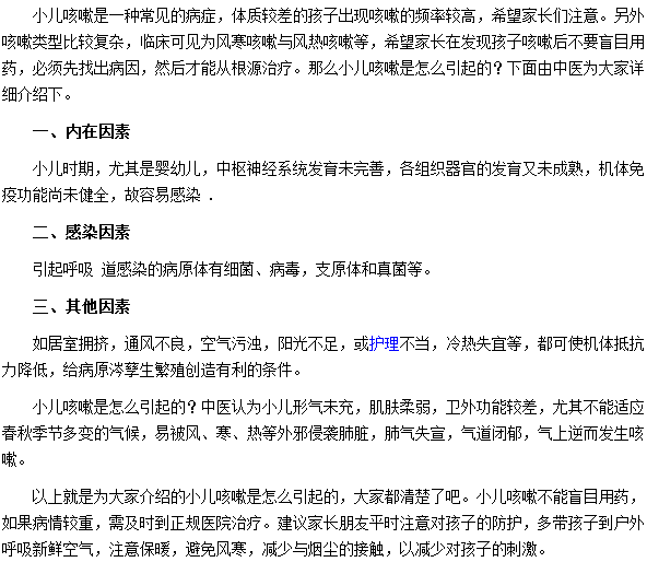 您想知道小儿咳嗽是怎么引起的吗?相信您看了这篇有关小儿咳嗽是怎么引起的文章,您就了解了。