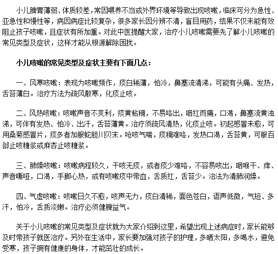 相信广大网友对小儿咳嗽的常见类型及症状很感兴趣,下面就请大家一起看一下关于小儿咳嗽的常见类型及症状的文章,希望对大家学习有帮助。