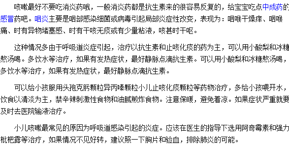 通过以上内容的了解,大家对当发生小儿咳嗽时能否吃消炎药的问题应该了解了。日常生活中要给孩子多喝水,比如熬冰糖雪梨水,来润肺止咳。另外,要加强孩子的身体锻炼,提高对疾病的抵抗力。