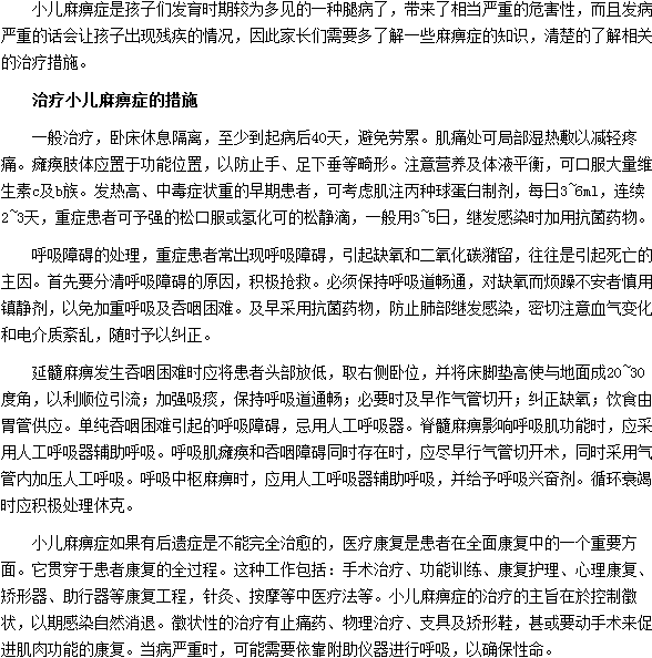关于小儿麻痹症不及时治疗可能会引发高血压的内容,相信很多人都比较感兴趣,医学教育网编辑特撰文如下: