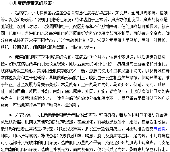 以上小儿麻痹症的形成原因及带来的危害的内容就为大家介绍完了,相信大家已经有所了解,希望上述文章能够对大家有所帮助,更多内容请继续关注医学教育网!