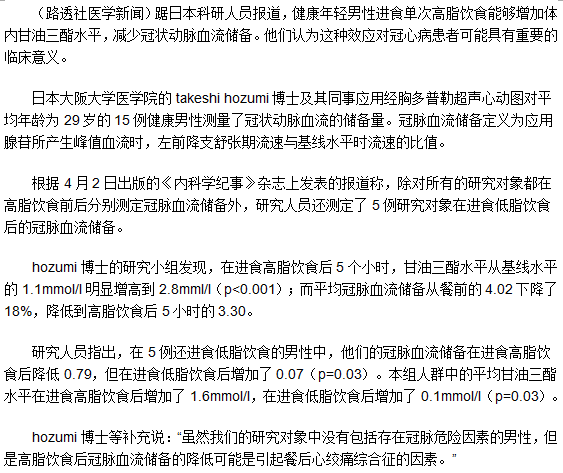相信大家在阅读完以上内容后对高脂饮食可能会引起餐后心绞痛有了一定的了解吧,同时医学教育网小编提醒大家可以将这篇文章分享给身边的朋友,让更多的人了解,引起足够重视!