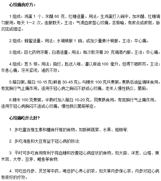 心绞痛患者应该吃什么,很多对心绞痛不了解,心绞痛常见疾病,心绞痛是冠状动脉供血不足,心肌急剧的、暂时缺血与缺氧所引起的以发作性胸痛或胸部不适为主要表现的临床综合症。本病多见于男性,多数病人在中老年人,下面我们看下中心绞痛患者应该吃什么: