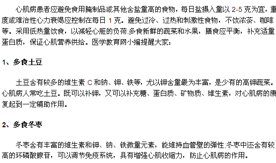 相信大家在关注医学教育网疾病栏目后,都知道心肌病是一种心脏疾病,而且心肌病患者常伴有充血性心力衰竭和各种心律失常,所以在饮食上要注意身体的钠、钾平衡,医学教育网小编特地为大家编辑整理了,为什么心肌病患者可以多吃一些土豆和冬枣这篇文章,希望对大家的健康有所帮助。
