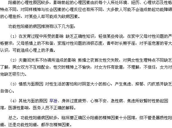 关于功能性阳痿病因的方面,相信很多男性朋友都很关注,下面医学教育网小编为大家整理“功能性阳痿的病因有哪几个方面?”这篇文章,具体内容如下:
