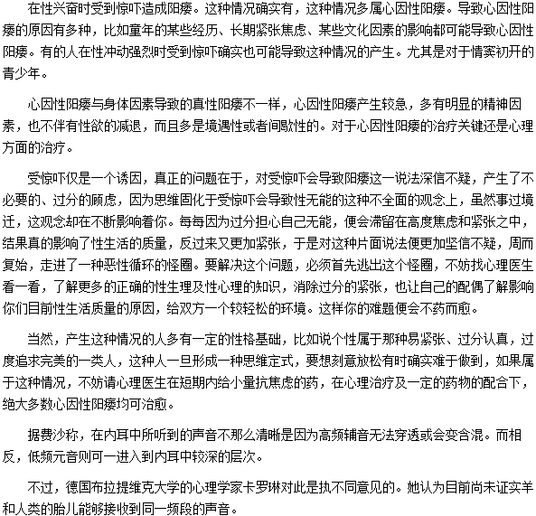 阳痿,一直是男性朋友非常关注的话题,在兴奋时受到重度惊吓可致阳痿是真的吗?有不少男性朋友对此都有疑问,下面医学教育网小编就此问题为大家整理具体内容如下: