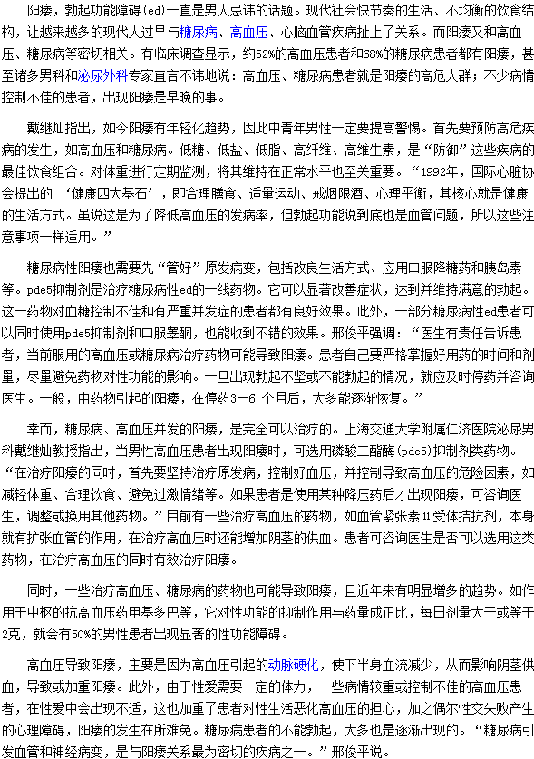 通过以上对“你知道哪些是阳痿的高危候选人吗”内容的介绍,相信大家已经了解了,希望上述文章能对大家有所帮助,更多内容请继续关注医学教育网。