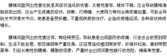 大家在看了以上内容后,大家也一定已经知道了腰间盘突出这种腰部疾病给病人带来的危害了吧。还请大家多多关注我们医学教育网,里边会有更多更好的关于各类疾病的相关信息。