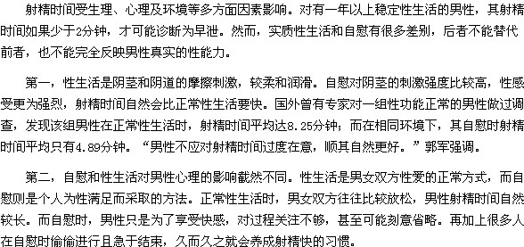 近期医学教育网小编了解到,很多男性朋友对是否患有早泄的判断,仅仅来源于自慰时的持续时间。为此,小编请教了有关专家,专家称判断是否早泄,靠自慰时间是不能作准的,下面小编特整理了相关的内容,供大家阅读查看。