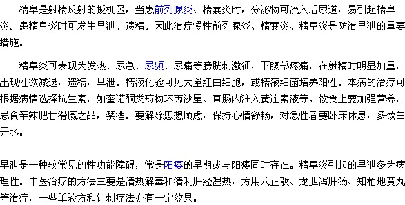 患精阜炎时可能会发生早泄的情况,广大男性朋友们都知道了吧,如果患上了早泄,请及时到正规医院介绍治疗,以免延误病情,希望上述文章能够对大家有所帮助!