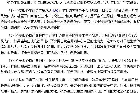 以上及时调整心理状态对治疗早泄非常关键就为大家介绍完了,相信大家在看完小编的介绍后,对此内容已经有所了解了,如果患上了早泄,请及时到正规医院介绍治疗,以免延误病情,希望上述文章能够对大家有所帮助!