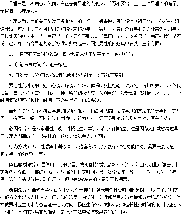 困扰男性的早泄问题集中在哪几个方面?相信大家通过上面小编的介绍,已经清楚了,如果您患有早泄,不妨试试小编上面介绍的几个方法,希望能够帮助到大家。