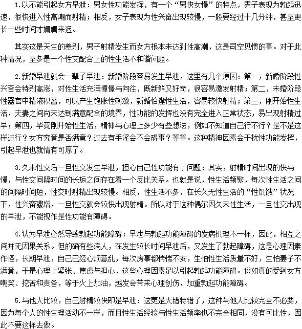 关于男性朋友容易陷入的五大早泄误区的文章,相信很多男性朋友都比较感兴趣,医学教育网编辑特撰文如下: