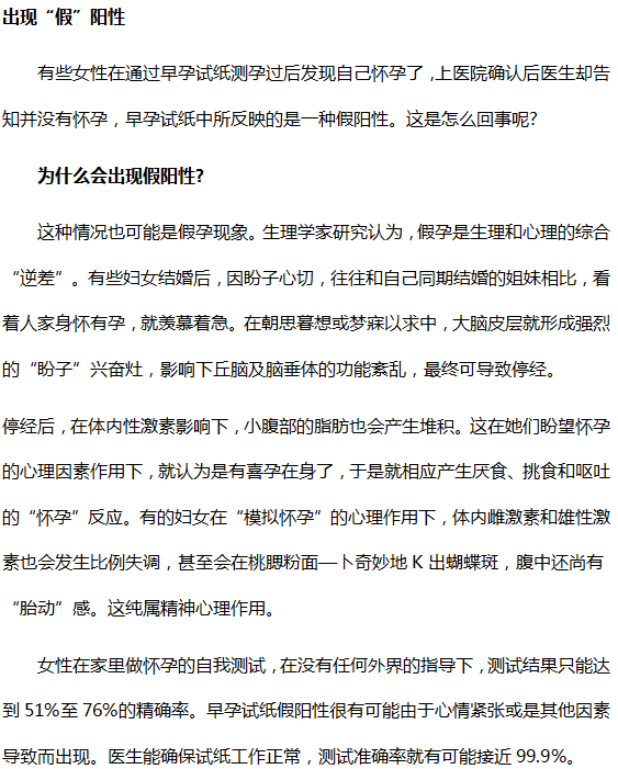 早孕试纸只能作为一种初筛检查,千万不可过分信赖它,因为用早早孕试纸测试会出现假阳性或假阴性。