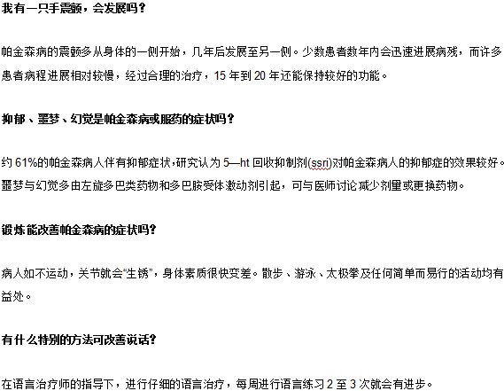 以上内容,是帕金森需要知道的7个问题,患有帕金森让自己行动不方便,适当的锻炼,出去走走,打打太极拳,对身体很有好处,希望您尽早恢复身体健康。如果您还想了解更多,请留言医学教育网。