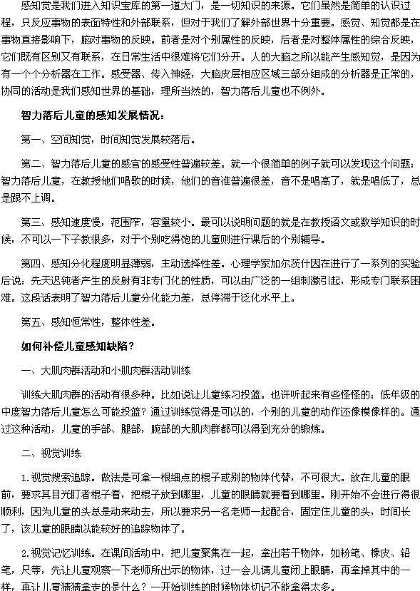 以上就是“智力低下儿童的感知发展情况及如何补偿儿童感知缺陷?”的内容,广大家长朋友都了解了吧,希望家长朋友们能够更多的了解相关知识,在日常生活中加强对智力低下儿童的关爱,使他们能够快乐成长!