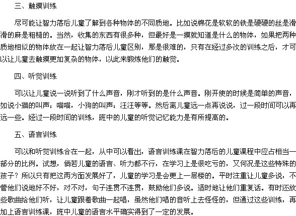 以上训练的目的主要是改善智力落后儿童大脑活动的功能,补偿感知方面的缺陷,是儿童的身心机能协调统一的发展。只要通过耐心、恒心、精心教育,就一定能让智力落后儿童在各方面得到充分的发展,不管他们的智商属于轻度弱智,还是属于中重度的弱智。
