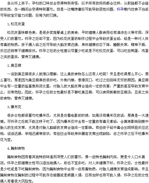 以上就是“孕妇饮食不当可能会导致宝宝智力低下”的内容,希望宝妈妈们认真阅读,网站特别声明:本网站所发布的文章并不意味着赞同或证实其观点,仅作为参考信息使用。疾病诊疗或药品选用等专业问题请及时到医院就诊或咨询相关医生。