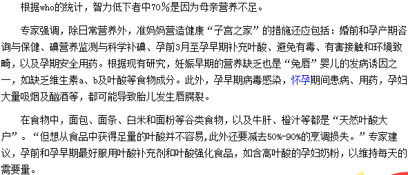 关于儿童智力低下70%是因为母亲营养不足的内容,通过对上文的了解,相信广大家长朋友们已经知道了,希望上述文章对大家能够有所帮助。