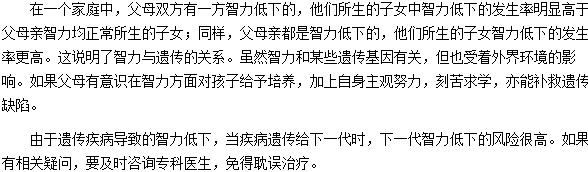 关于父母智力低下会不会遗传给孩子的相关内容,通过小编对上文的介绍,相信大家已经有所了解了,希望上述文章对大家能够有所帮助。