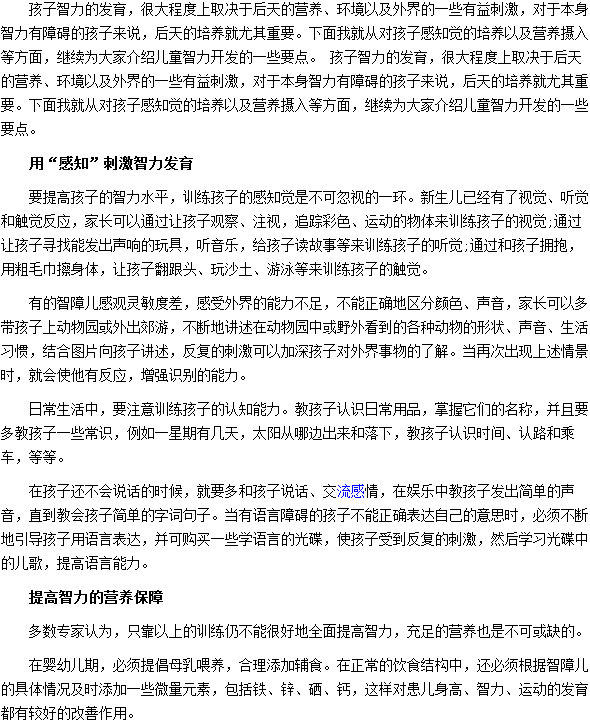 以上就是“如何能够让智力低下的孩子聪明起来”的内容,相信大家在看完上述文章后已经有了更深刻的认识,更多内容请继续关注医学教育网。本网站所发布的文章并不意味着赞同或证实其观点,仅作为参考信息使用。疾病诊疗或药品选用等专业问题请及时到医院就诊或咨询相关医生。