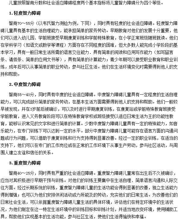 相信很多人会对儿童智力低下的四个等级的表现症状比较感兴趣,为此,医学教育网编辑特地为您准备了这篇关于儿童智力低下的四个等级的表现症状的文章,希望对您有帮助。