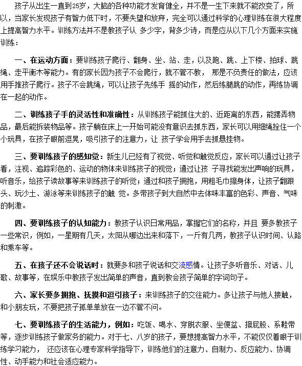 您想知道关于提高智力低下孩子的七步骤训练法是什么吗?相信您看了这篇有关提高智力低下孩子的七步骤训练法的文章,您就了解了。