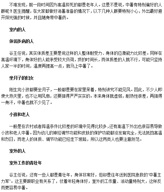 关于高温天气八类人需慎防中暑,相信很多人都比较感兴趣,医学教育网编辑特撰文如下: