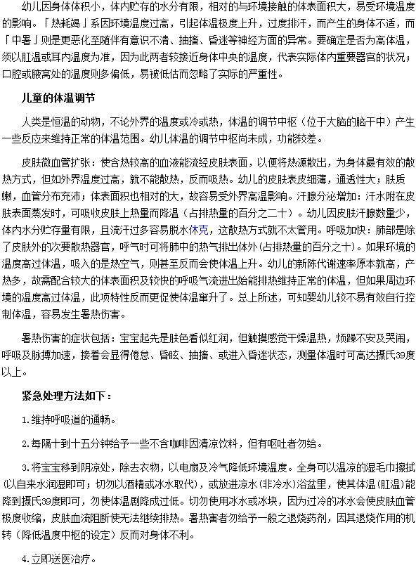 相信通过小编对幼儿中暑的预防及紧急处理方法的介绍,家长朋友们应该都了解了,如果宝宝出现了中暑的现象,大家不妨试试小编为大家介绍的方法,更多内容请继续关注医学教育网。