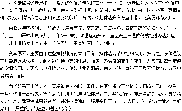 精神病患者服用某些药物会导致中暑,相信很多人都不知道,那么精神病患者服用哪些药物会导致中暑呢?相信大家看了下面这篇文章就会明白了。