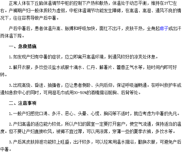 关于产后中暑的急救措施及注意事项,很多人都想知道,医学教育网编辑经过多方搜寻,现将产后中暑的急救措施及注意事项这篇文章分享给大家。