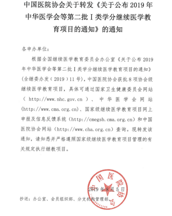关于转发《关于公布2019年中华医学会等第二批I类学分继续医学教育项目的通知》的通知
