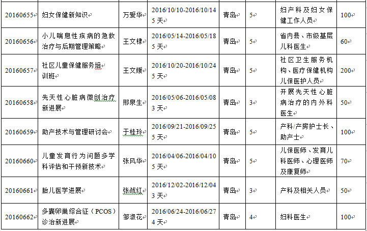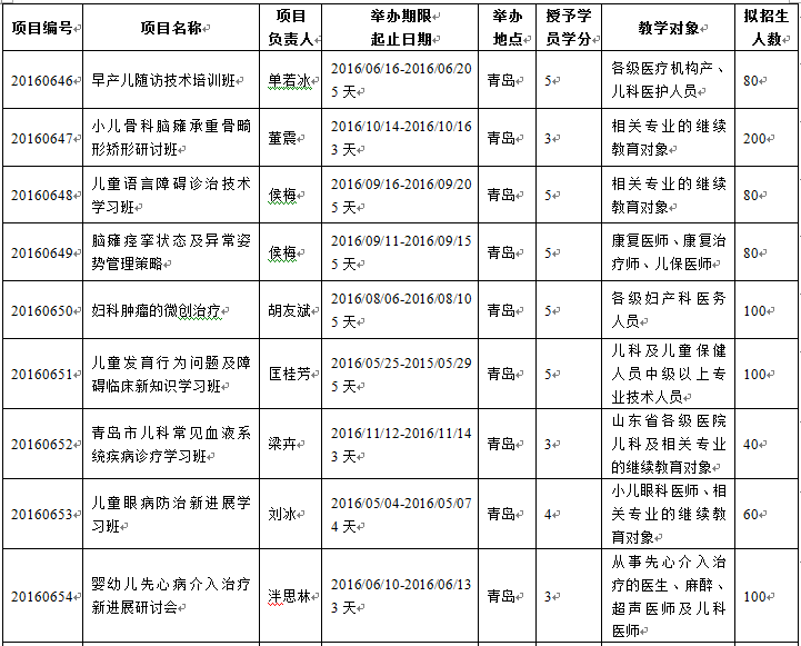 山东省继续医学教育委员会2016年省级继续医学教育批准项目: