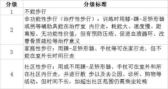 康复理疗师-步行能力分级量表