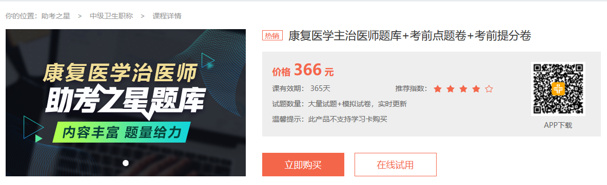医学教育网题库软件提供免费试用,同时提供丰富的考试复习资料,优惠价格:366元/套!各位考生不要错过!